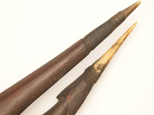 Auf die Holzspitzen sind kleine Spitzen aus Muschel,