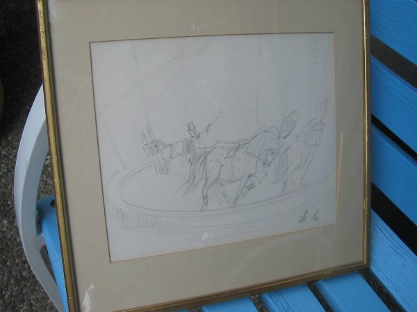 2 antike Zeichnungen unter Glas, Rahmen 30.5x37.5 cm