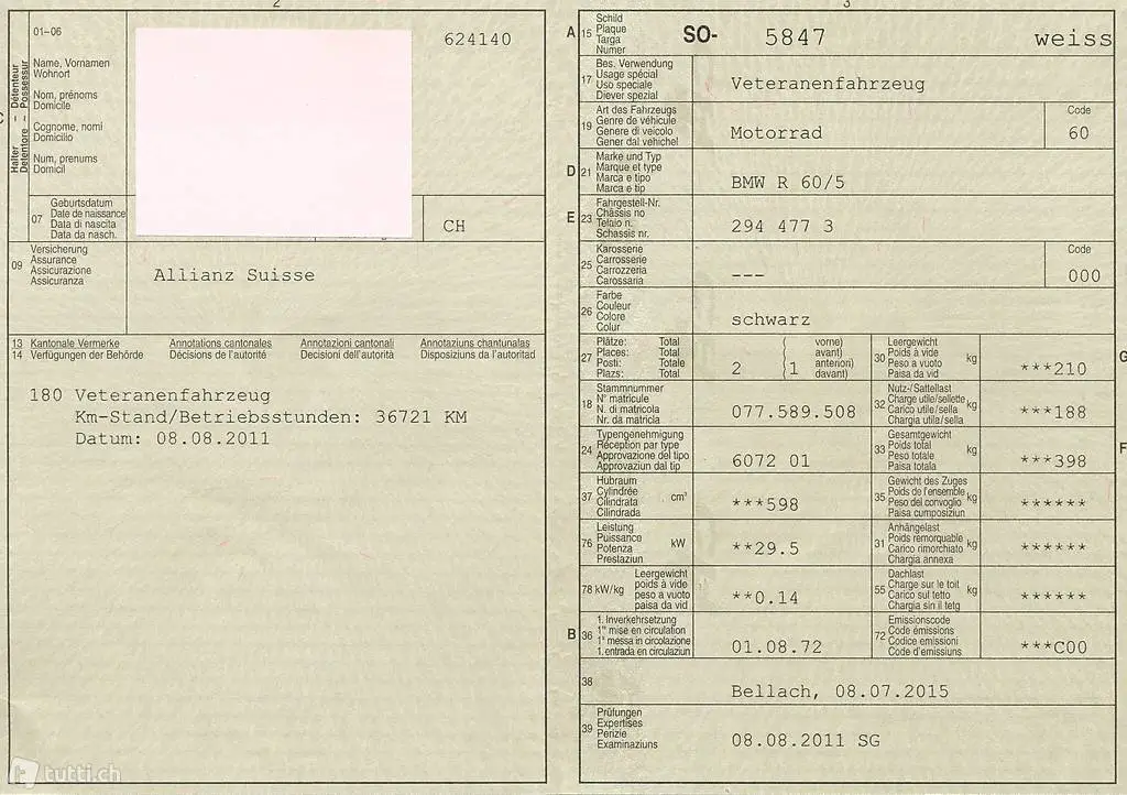 Veteranenfahrzeug vorgeführt. Keine Beanstandungen.