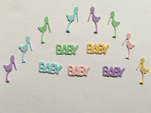 Tischdekoration Baby & Storch von Rayher, schöne bunte gemischte Farben!