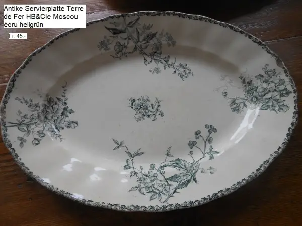 Servierplatte antik Terre de Fer HB&Cie Moscou écru hellgrün 45.