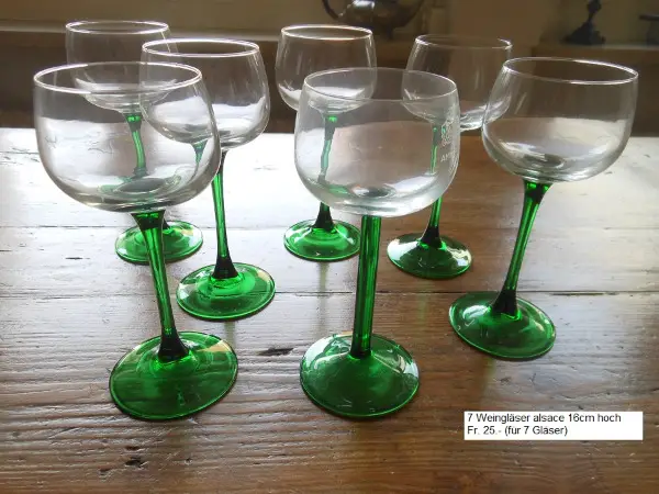 7 Gläser Alsace mit grünem Fuss 16cm hoch Fr. 25.-
