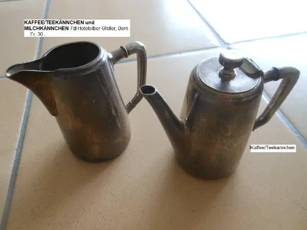 KAFFEE / TEEKÄNNCHEN und MILCHKÄNNCHEN 7dl Hotelsilber Gfeller, Bern Fr. 30.-