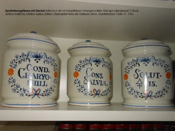 Steingut unterglasiert 3 Stück, Gefäss Solut Ris, Gefäss Salvia, Gefäss Charyophill, Höhe der Gefässe 20cm, Durchm. 13cm Fr. 180.-