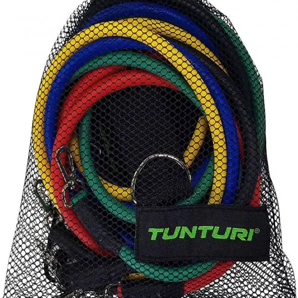 Das Tunturi multifunktionale Widerstandsbänder Set (14TUSFU199) ist aus Latex hergestellt und kommt mit einem Netz-Beutel,