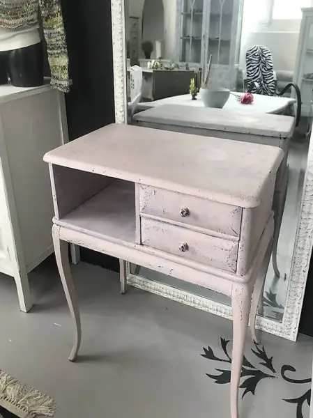 Keckes antikes Beistellmöbel aus Massivholz mit 2 Schubladen und einem Fach. Praktisch zum Versorgen verschiedener kleiner Dinge.