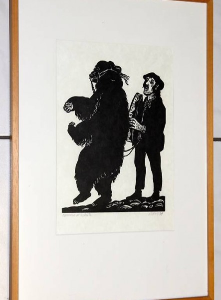 Orignial-Holzschnitt aus dem Jahr 1979 mit tanzendem Bären (Epreuve d'artiste)