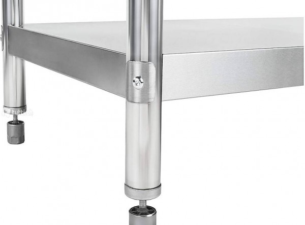 1 Arbeits- und 1 Ablagefläche, bis 90kg, höhenverstellbare Füsse, Edelstahl