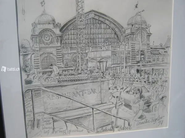 Bleistiftzeichnung Bahnhof SBB Basel