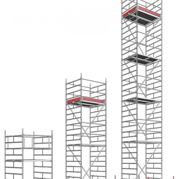 Durch die von höhenverstellbare Belagbühne kann das Gerüst mühelos auf jede Höhe angepasst werden, bestens geeignet für Arbeiten auf dem