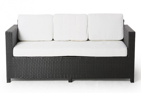 Das Kunststoffrattan der Lounge ist wetterbeständig. Die Sitzpolsterbezüge sind abnehm sowie waschbar.