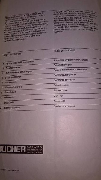 Ersatzteilliste (PDF) Bucher M 100 Motormäher