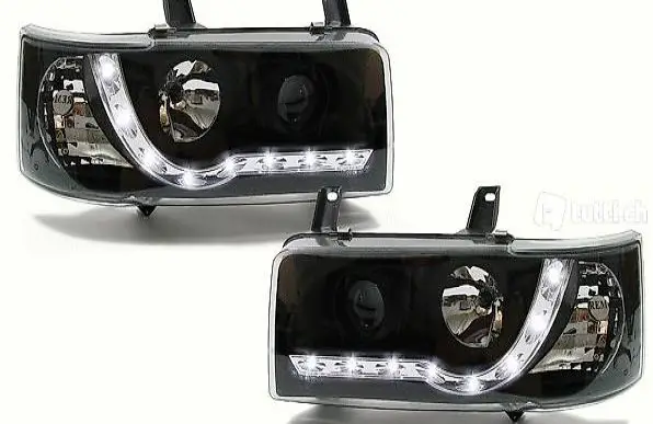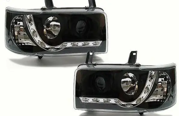 KLARGLAS SCHEINWERFER + LED TAGFAHRLICHT OPTIK SCHWARZ für VW Bus T4 90-03