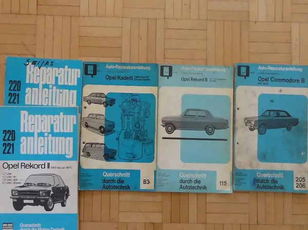 Verkaufe Auto-Reparaturanleitungen für Opel: Opel Rekord 2 (ab 1972), 1,7 Liter, 1,7 Liter "S", 1,9 Liter "SH", 2,1 Liter "Diesel", Opel Rekord B (ab 1965), 1,5, 1,7 "S", 1,9 S Motor, Opel Commodore B (GS, GS/E) mit elektrische Anlage, Mass- und Einstelltabelle, elektrischer Schaltplan, etc.