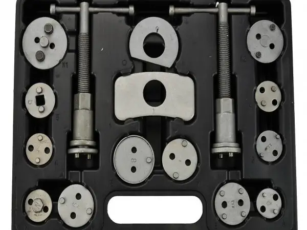 - 17 Adapter, die für die Grösse der Bremskolben geeignet sind, die in den meisten in Europa und Asien produzierten Personenkraftwagen wie min.