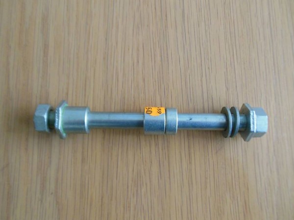 Bild 2 Hinterradsteckachse mit Hülsen u.Mutter.Masse:Länge 188mm Durchmesser 12mm.