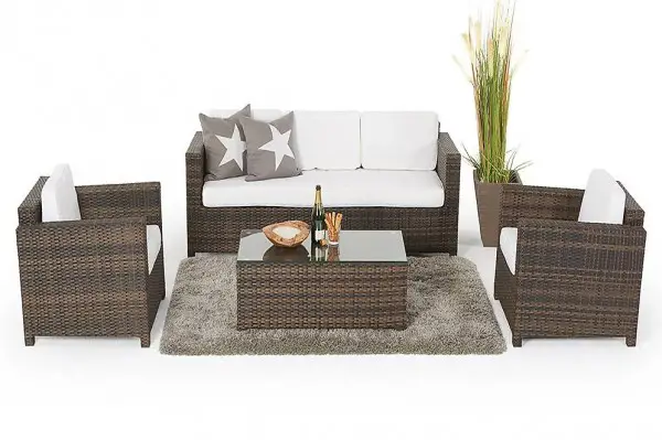 Rattan Lounge ist wetterbeständig. Der Rahmen dieser