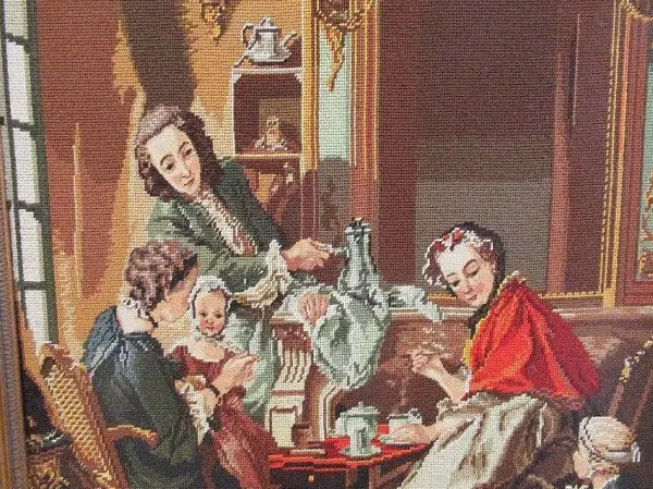 Schönes gewebtes Bild in einen schönen Rahmen aus Holz. Name des Motives und das Alter sind leider unbekannt. Keine Beschädigungen bekannt. Kommissionsverkauf. Masse ca. 92x117 cm.
