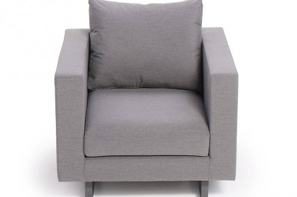 Sunbrella Lounge Sessel mit hohen Rückenkissen, ideal zum Anlehnen.