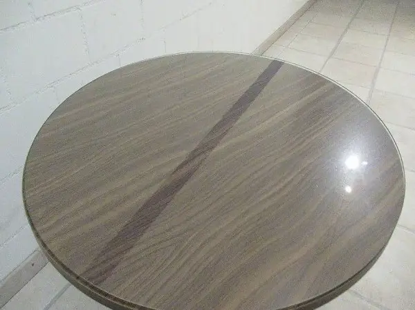 Spanholztischplatte mit Glasscheibenauflage und Metall-Fuss. Alles in guten Zustand. Durchmesser 67 cm und Höhe 53 cm. Besichtigung und Abholung bei Flums Antik.