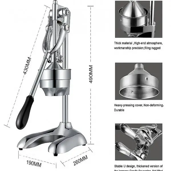 Zitruspresse, rostfrei Orangen-Limettenpresse Squeezer aus Edelstahl, Profi Juicer Entsafter, Ohne Strom