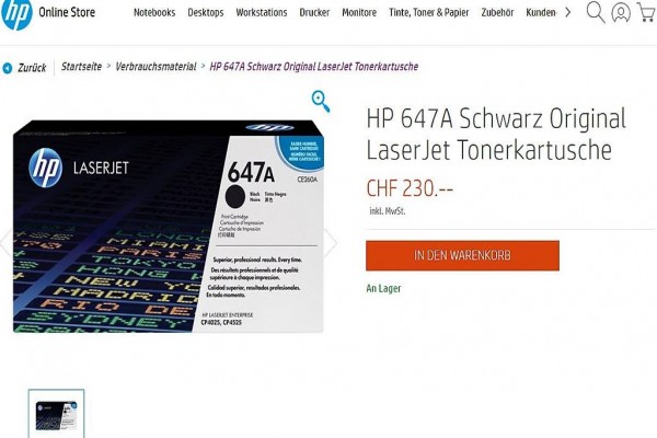 HP Art.-Nr.: 647A, CE260A, Ladenpreis: 230,00. Passend zu: