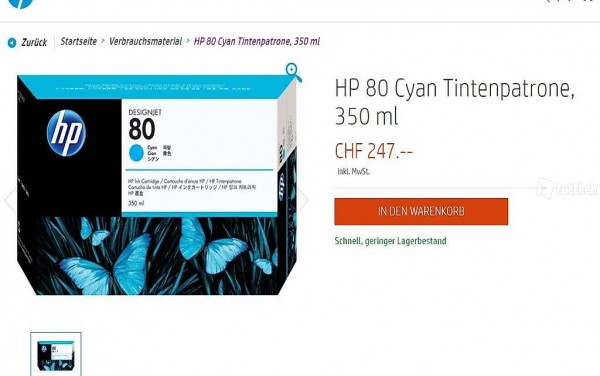 HP Art.-Nr,: Nr. 80, C4846A. Ladenpreis: Fr. 275,00. Passend zu: