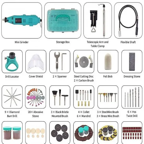 Der Mini-Schleifer Schleifmaschine Kit ist 100% brandneu und hochwertig. Geeignet für eine Vielzahl von Um-die-Haus, Werkstatt, Baustelle und Crafting-Projekte, ideal für DIY'ers, Handwerker,