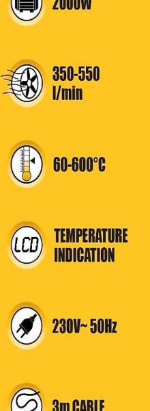 - Leistungsstarke Heissluftpistole mit 2000 Watt