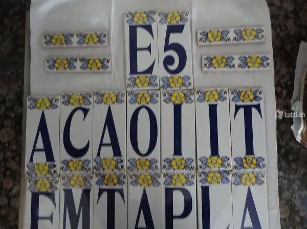 schöne Keramikplatten ungebraucht, alle auf den Fotos, 20 Stücke Buchstaben und Nummer Grösse 7/ 15, können individuell verarbeitet werden,