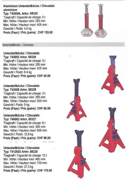 Unterstellböcke je nach Bedarf für Garagen, Werkstätten,