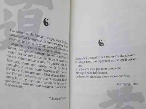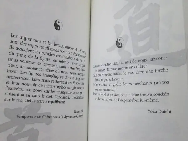 Extraits de textes fondateurs, tels le Tao-tê-king de Lao-Tseu et le Yi king, ou d'écrits de penseurs contemporains, les préceptes de cet ouvrage sont autant d'invitations au recueillement.