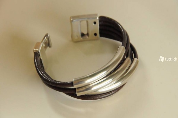 Lederarmband braun mit 925 massiv solide Sterling Silber
