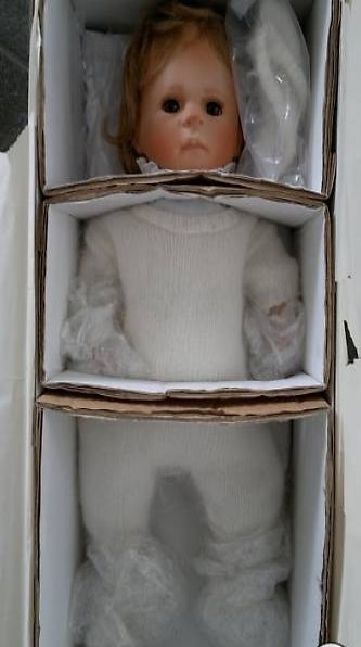 Sammlerpuppe der Künstlerin Andrea Zimmermann-Brugg aus Wien, Gesicht handgemalt, Nr. 224/1500 Stück weltweit. Neu und unbespielt, original verpackt mit Echtheitszertifikat. Grösse ca. 45 cm.