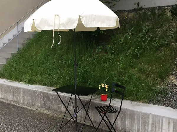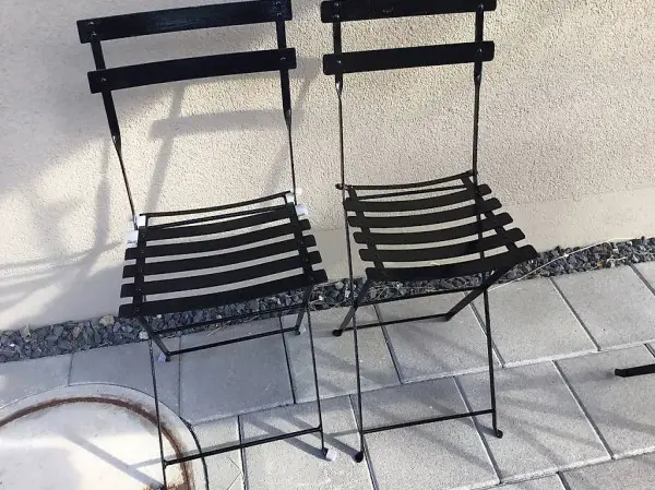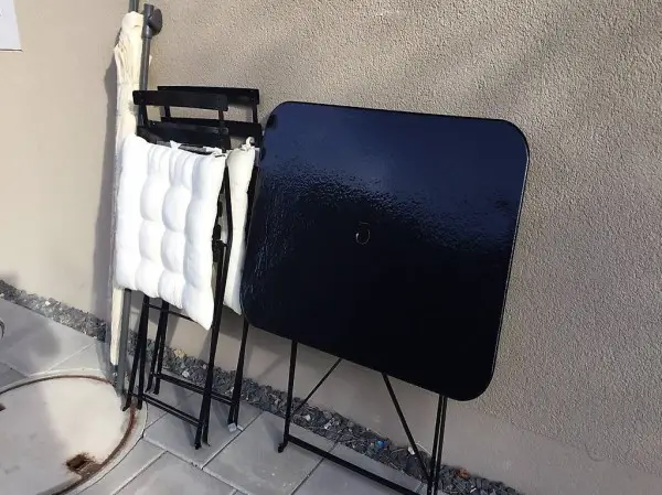 Frisch renovierter Garten Tisch mit 2 Stühlen beides aus Metal ( mit Hammerite, Hammerschlag gemalt ) und Sonnenschirm. Zweiter Stuhl ist dazu gekauft worden und ist farblich angepasst worden. Kann sehr flach zusammengeklappt werden. Masse Tisch 58,5 cm x 80 cm Höhe 71 cm. Masse Schirm ca 2.20 m. Muss abgeholt werden, oder kann in der Gegend gegen Entgelt gebracht werden.