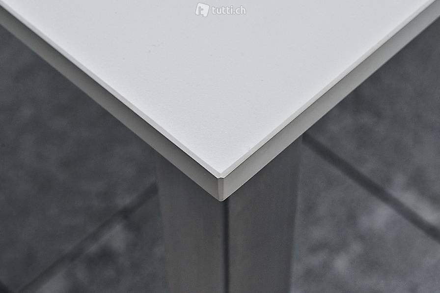 Swiss Made: Sowohl die Tischplatte als auch das Edelstahlgestell wurde bei uns im Werk hergestellt. Die zweiteilige Konstruktion (verschweisstes Gestell und Tischplatte) verleiht dem Tisch eine gute Stabilität. Wir können Ihnen auf Wunsch jeden Tisch nach Mass herstellen.