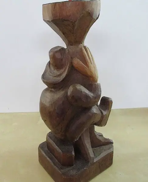 Holz. Altersbedingter Zustand ohne Beschädigungen. Alter und Künstler leider unbekannt. Masse: 16x19 x 41 cm. Besichtigung und Abholung bei Flums Antik oder Versand 11 Franken. Beim Kauf mehrerer Artikel, zahlen Sie nur einmal den Versand / Lieferung.