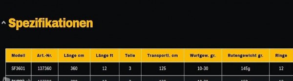Bei der Entwicklung der Rute lag der Focus besonders auf den Themen Leichtigkeit und Sensibilität. Herausgekommen ist ein sehr schlanker und extrem leichter Blank aus High-Modulus Carbon, -welcher mit seiner sensiblen Aktion für einen enormen Drillspass am Wasser sorgt. Die Ruten eigen sich sowohl für die Angelei mit Pose im Fluss als auch z.B. mit Spirolino am See. Ebenfalls auch sehr gut für die Hegenenanglei vom Ufer geeignet! Ausgestattet sind die Ruten mit sehr leichten Spezialringen und einem FUJI DPS-Rollenhalter. Die Exclusive Trout ist in 3,60 m und 3,90 m mit 10 ? 30 g Wurfgewicht erhältlich.