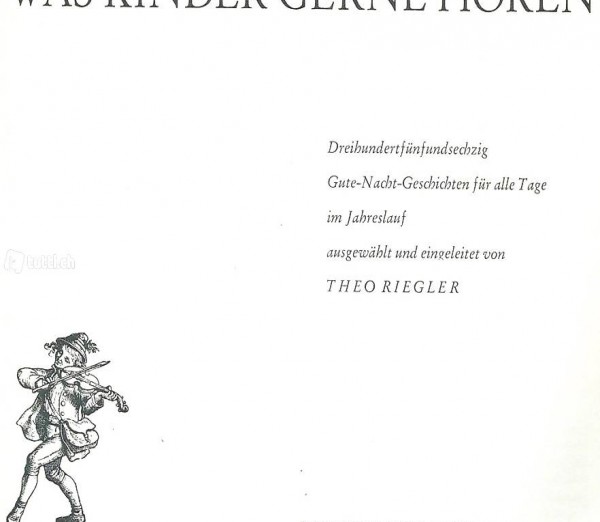 Was Kinder gerne hören - 365 Gutenacht-Geschichten, für alle Tage im Jahreslauf. Erschienen 1965 im Schweizer Verlagshaus Zürich, als Lizenzausgabe. 192 Seiten im Format 22,2x24,5 cm, gebunden. Trotz des Alters ist das Buch in einer guten Erhaltung, einige (nicht störende) Gebrauchspuren sind vorhanden. Kontaktaufnahme am besten via trovas.ch (E-Mail), keine SMS.