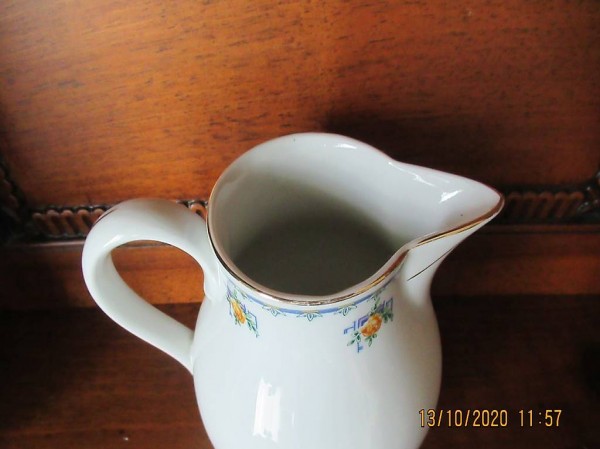 Porzellan mit Handmalerei, von Langenthal nummeriert mit Inhalt 0,6 Liter, von 1930 war dazumal ein Vorzeigestück, im Moment noch beinahe neuwertig, keine Verletzungen, Höhe 13 cm,