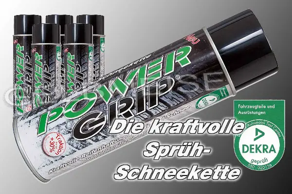 Winter, die Strassen sind mit Eis oder Schnee bedeckt, die Reifen finden keinen Halt und drehen durch. Ein Anfahren scheint unmöglich. Für genau diese Fälle gibts Power Grip. Das neue Spray wurde von der Dekra geprüft und hat ein Siegel des unabhängigen Instituts erhalten. Bei den Tests wurde nachgewiesen, dass Power Grip die Traktion der Reifen um bis zu 30 Prozent erhöht.