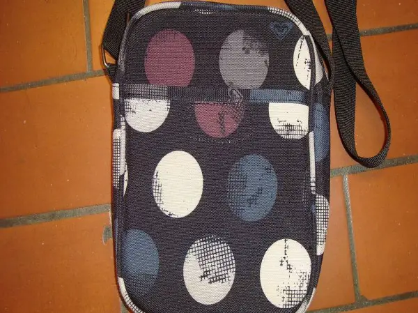 Ca. 17x23 cm. Vorne mit ROXY-Zeichen (Bild 2) und ein Aussenfach mit Reissverschluss. Auf der andern Seite ein Aussenfach mit Klettverschluss. Zustand wie neu.