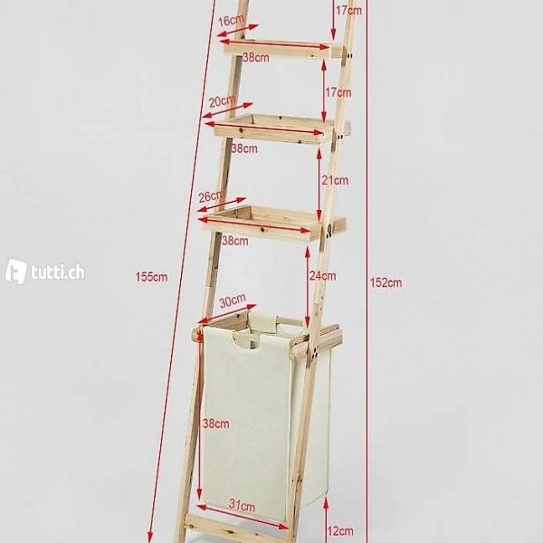 Produktmasse: Gesamtmasse: B 42xH 152xT35cm; obere Ablagefläche : B 38x T16 cm; mittlere Ablagefläche: B 38x T20 cm; untere Ablagefläche : B 38x T26 cm;