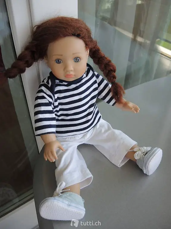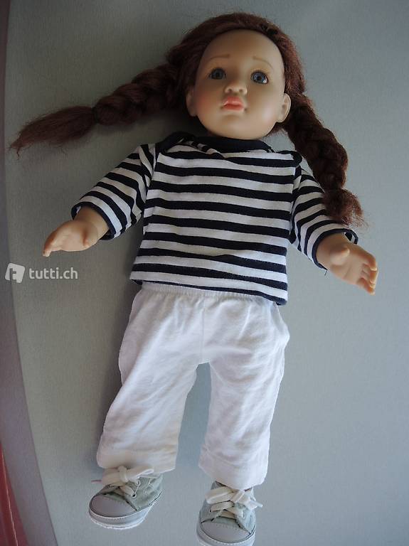Spielpuppe mit Zöpfen, vollständig bekleidet