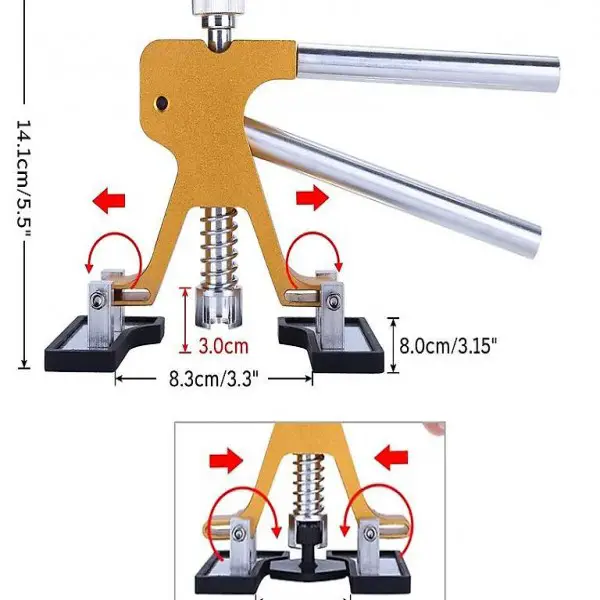 Professionelles Dellen Reparaturset : Der speziell entwickelte Golden Dent Lifter kann eine Höhe von 1 cm und eine Breite von 3,8 cm sowohl für kleine als auch grosse Dellen einstellen. 21 verschiedene Ziehlaschen in Form und Grösse werden aus PA-Materialien zum Befestigen verschiedener Dellenformen geliefert .
