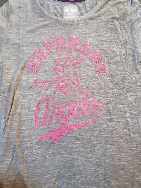 Superdry Damenshirt, grau mit Glitzerprint, Gr. XL
