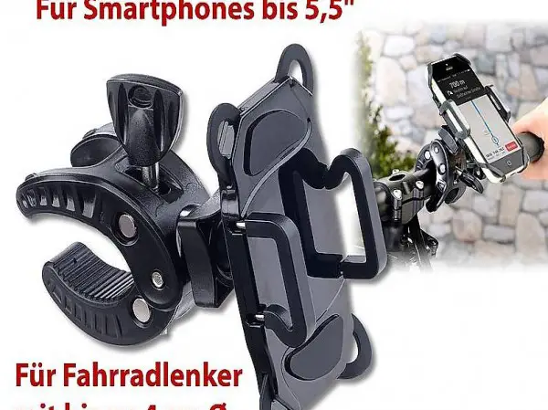 Mobilgerät sitzt bombenfest: Die Schraub-Klaue sorgt für extra sicheren Halt am Lenker. Zusätzlich fixieren Sie Smartphone & Co. mit 4 Gummi-Laschen. Und dank Kugelgelenk sehen Sie das Display stets aus dem richtigen Winkel.