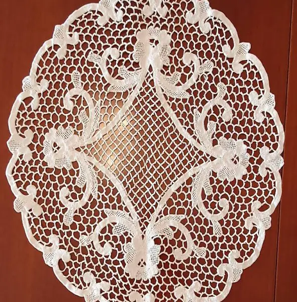 Masse: (/) 46cm rund mit Blumen englische Strickerei