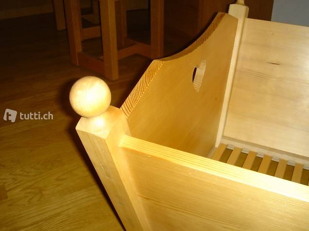 Wiege in Fichten- und Ahornholz von Hand gefertigt vom