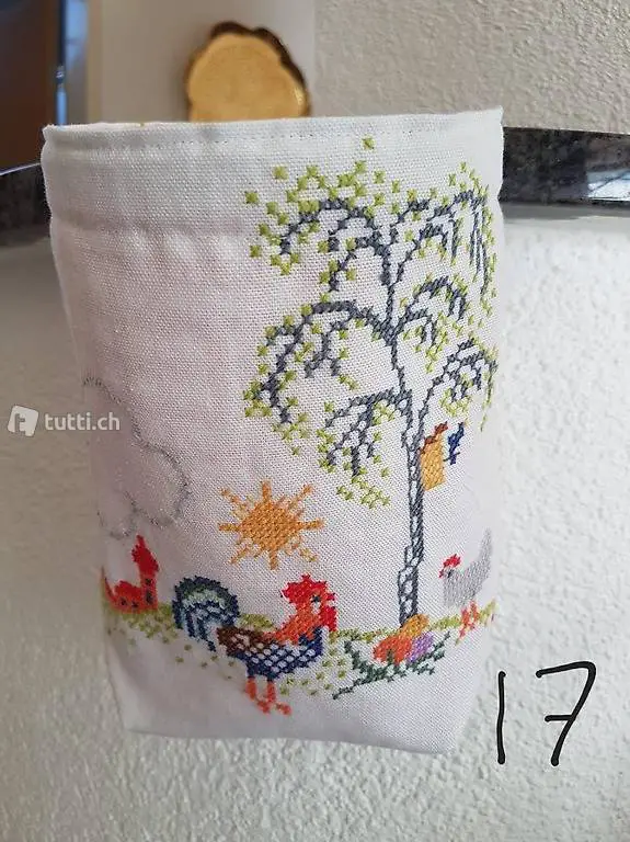 Dieser Fadenfänger ist aus ganz besonders speziellen Material genäht. (Kreuzstiche)